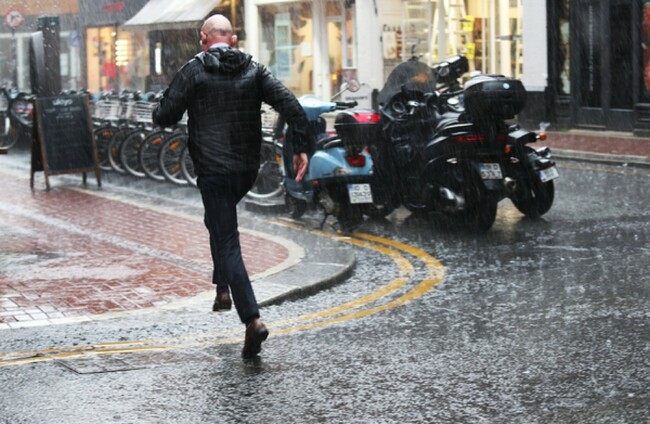 A man runs for shelter in Dublin city centre. RollingNews.ie