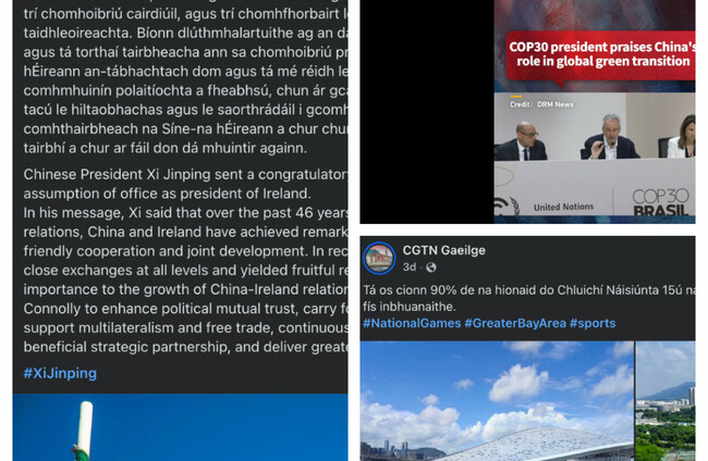 Dar leis an eolaí slándála, Declan Power, tá an cuma ar na scéalta atá á fhoilsiú gur iarracht é seo ‘cumhacht bhog’ a úsáid chun tionchar na Síne a threisiú in Éirinn.