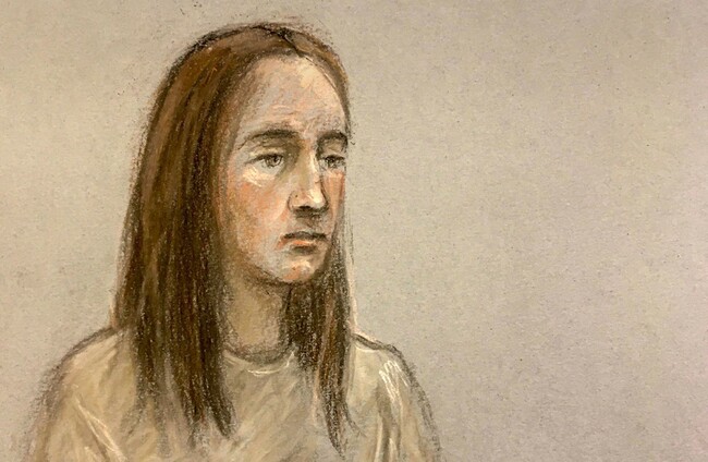 Court artist sketch of Lucy Letby appearing via video link at Warrington Magistrates' Court. PA Images/Elizabeth Cook