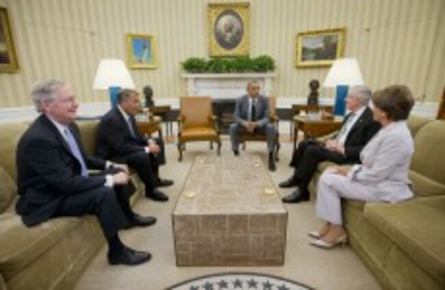 Obama met Democratic Congressional chiefs Senate Majority leader Harry Reid and House Minority Leader Nancy Pelosi and Republican party bosses, House Speaker John Boehner and Senate Minority Leader Mitch McConnell.