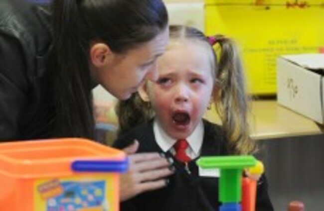 Jessica Boyle gets a little upset as she has to leave her mother on her first day at Gardiner Street school in Dublin 1 earlier this month. Laura Hutton/Photocall Ireland