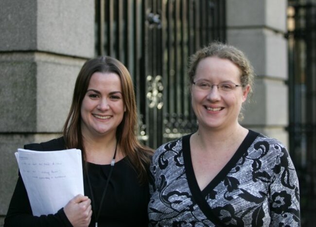 Ciara Staunton and Jennifer Schweppe outside Leinster House yesterday. Pic: Sam Boal/Photocall Ireland