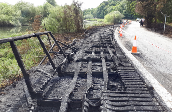 The boardwalk is close to the Battle of the Boyne site, and up to 400m of the structure is reported to have been destroyed in the fire.