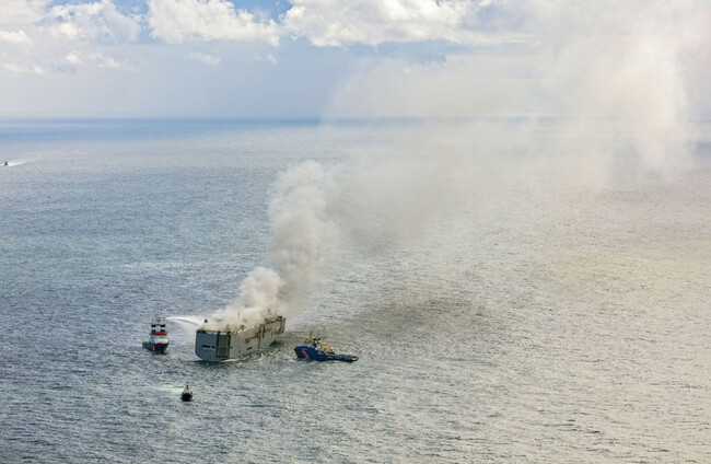 The cargo aboard the vessel includes electric vehicles and a coastguard official told Dutch media that authorities were looking into whether the fire had started with one of them.