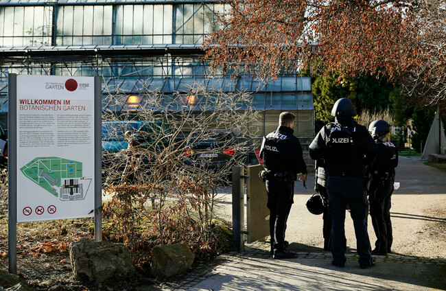 Police officers stand at the site of the Heidelberg University Botanical Garden following the shooting on the campus Alamy Stock Photo