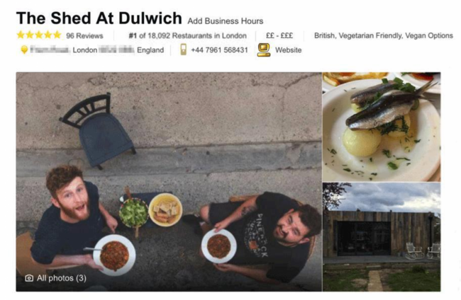 This article by Vice feature writer Oobah Butler is garnering much attention online this week. In it, the London resident outlines how he made up an entire restaurant and through various nefarious means, got it to #1 on TripAdvisor.