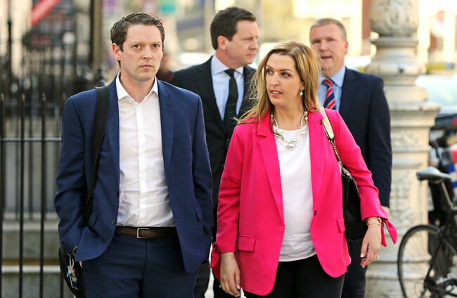 Vicky Phelan at Leinster House with Stephen Teap, whose wife died before she was told that her smear test had been wrongly interpreted. Brian Lawless via PA Images