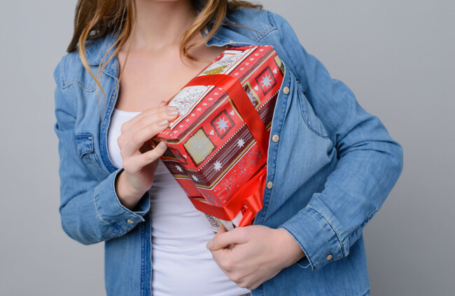 Cousin Nicola trying to sneak one present away before dinner. Shutterstock/Inspiration GP