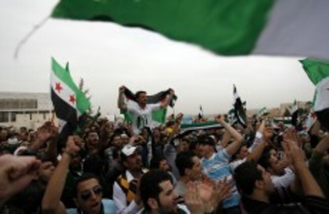 Syrian protesters chants anti-Assad slogans during a celebration to commemorate the second anniversary of the Syrian revolution, in Amman, Jordan Mohammad Hannon/AP/Press Association Images