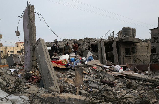 People check the rubble of buildings destroyed in Israeli air strike Rafah yesterday Alamy Stock Photo