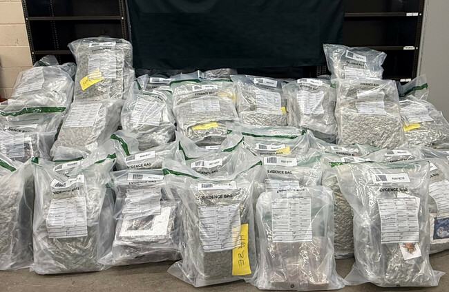The suspected cannabis was concealed within a large number of boxes.