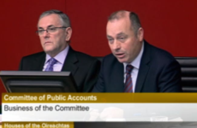 PAC chair John McGuinness and the committee clerk Ted McEnery this morning/ Screengrab via Oireachtas TV