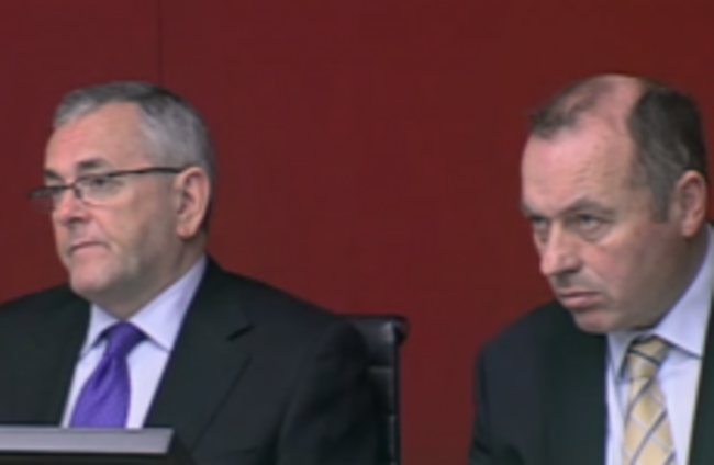 PAC chair John McGuinness and the committee's clerk, Ted McEnery. Screengrab via Oireachtas TV