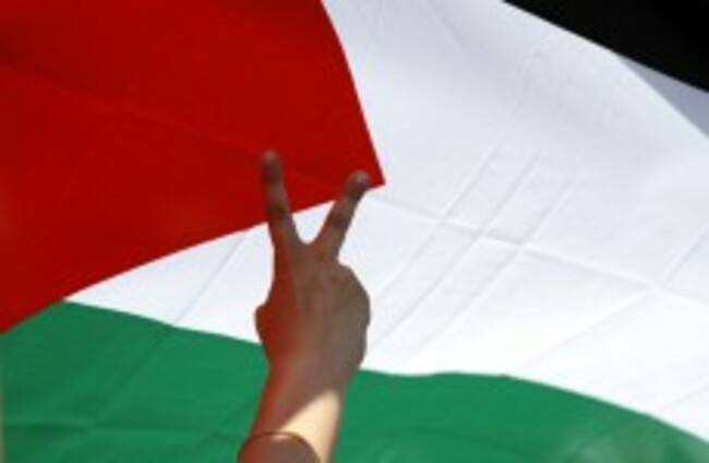 A 'V' for victory sign in front of a Palestinian flag (File photo) KOSTAS TSIRONIS/AP/Press Association Images