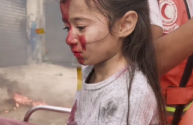A VIDEO OF a young girl having makeup and fake blood applied, accompanied by scenes of people waving Palestinian flags, is being shared on social media alongside claims it shows Gazans are staging injuries during the war between Israel and Hamas.