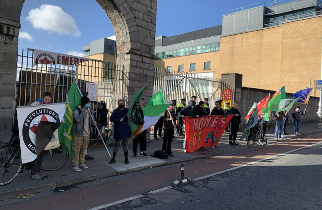 HOUSING ACTIVISTS PROTESTED in Dublin 8 this morning after a Garda operation removed a number of people who had been staying in a vacant property allegedly in breach of a court order.