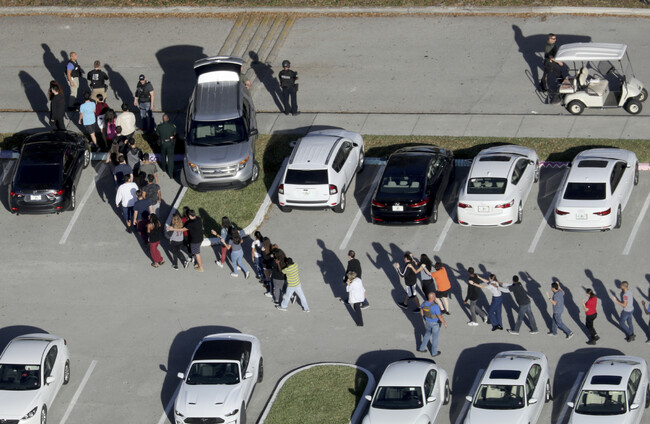 Students are evacuated by police from Marjorie Stoneman Douglas High School in Parkland. Mike Stocker