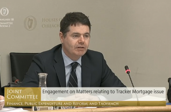 Paschal Donohoe was speaking to the Finance Committee today about the tracker mortgage scandal.