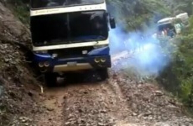 According to videos posted online, the driver made his 50 passengers disembark before attempting a particularly dangerous stretch of the road.