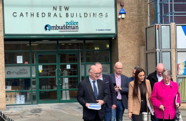 Family of Patsy Kelly leave the NI Police Obudsman today Órfhlaith Begley MP