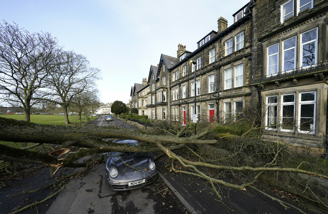 A Porsche 911 car is damaged by a fallen tree in Harrogate, North Yorkshire, as a result of storm Otto. PA