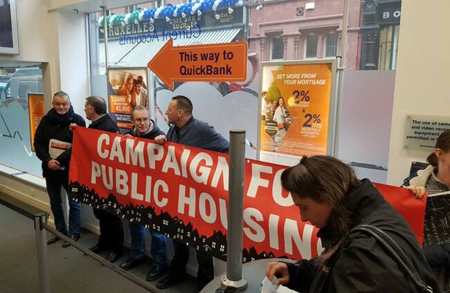 The Campaign for Public Housing staged the lunchtime occupation to protest against the bank’s proposed sale of 18,000 properties to vulture funds.