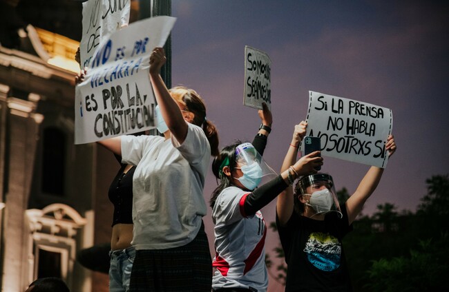 They carried signs reading “Merino, you are not my president” and “Merino impostor” while chanting.