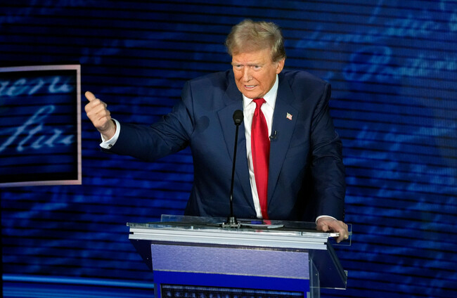 Donald Trump speaks during last night's presidential debate with Kamala Harris. Alamy Stock Photo