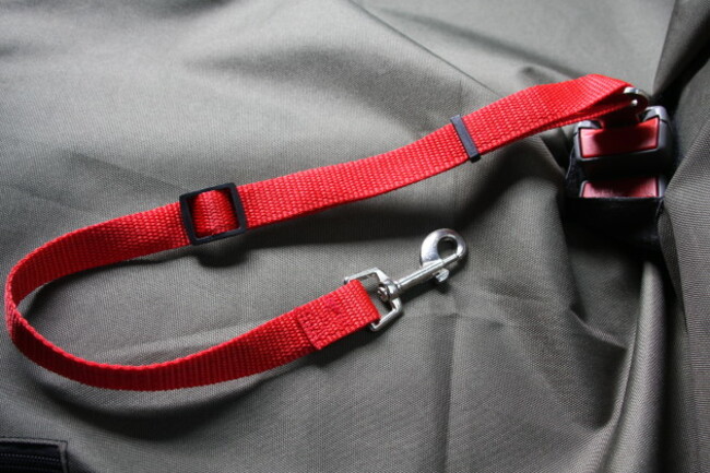 Some covers come with a safety leash that clips into the seatbelt buckle and can be attached to pet cages or the collars of smaller pets. My dog was quite large so I attached the belt to his harness.