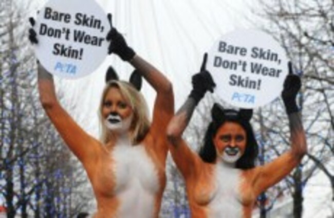 Monica Harris (right) and Victoria Eisermann pose for a PETA campaign against wearing fur. Stefan Rousseau/PA Archive/Press Association Images