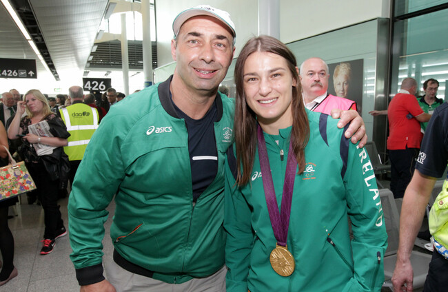 Gold medal winner Katie Taylor poses with her medal with her father Pete. Mark Stedman/Photocall Ireland