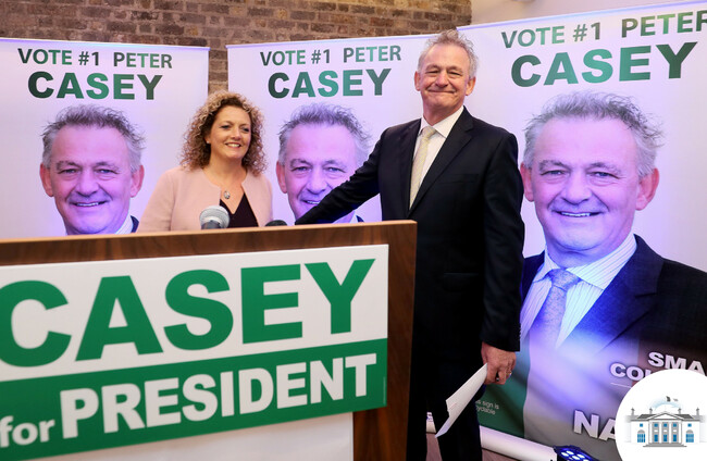 When asked by reporters whether other candidates have been too respectful towards the incumbent during the campaign so far, Casey said many have referred to Higgins as a “wonderful” President, referring in particular to Seán Gallagher.