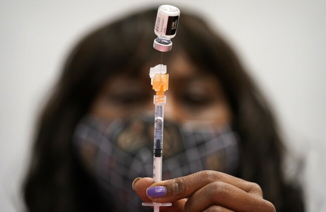 A medical assistant prepares a dose of the Pfizer vaccine at a vaccination center at the University of Nevada. John Locher