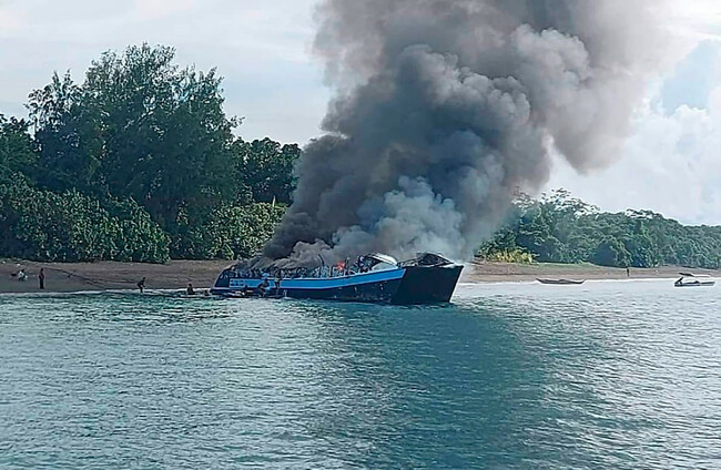 Pictures released by the coast guard showed fire engulfing the ferry and dark smoke billowing from it.