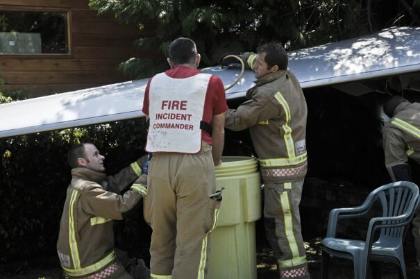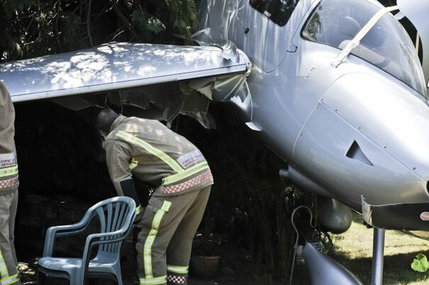 PHOTOS: Plane crashes into someone's back garden - and somehow, nobody is injured