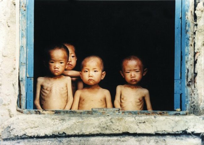 This photograph showing severely malnourished children in an orphanage was taken by Trócaire director Justin Kilcullen during a visit to North Korea and was one of the first images to emerge from the country documenting the extent of the famine.