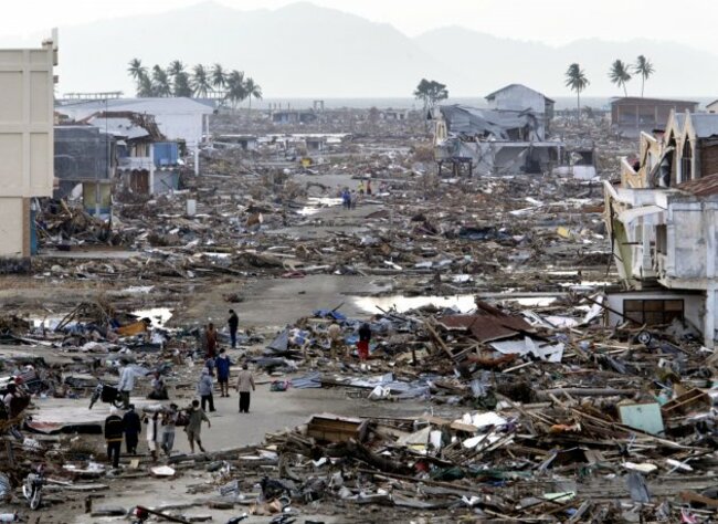 This photograph shows the scale of the devastation left in the commercial area of Banda Aceh in northwest Indonesia five days after the tsunami ravaged the city. (Photo: Bullit Marquez/AP)