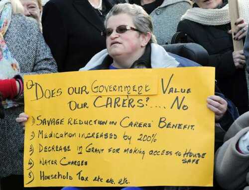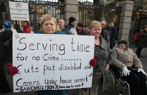 AROUND 300 CARERS and their families from across Ireland picketed Leinster House earlier today over the 9 per cent cut to the Respite Care Grant announced in the Budget last week.