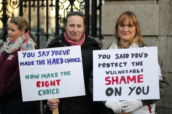 Carers at the Dáil ask for the government to make the "right choice". (Niall Carson/PA Wire)