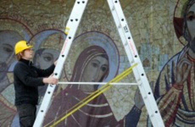 Workers put the finishing touches to the main stage at the Eucharistic Congress Laura Hutton/Photocall Ireland