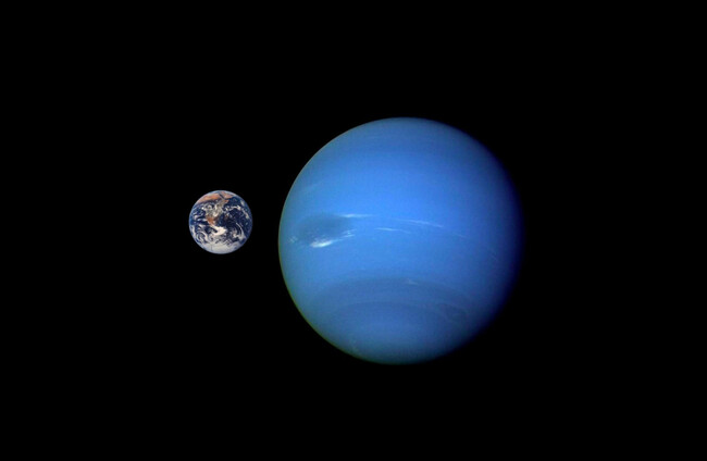 Image comparing the size of Earth to Neptune Alamy Stock Photo