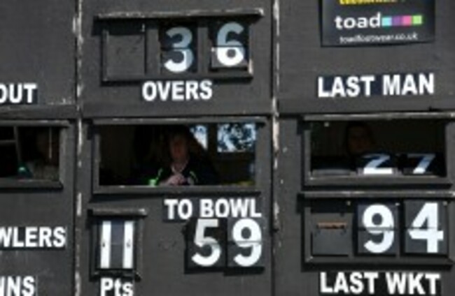 An old fashioned cricket scoreboard in operation at Queens Park, Chesterfield, England. Neal Simpson/EMPICS Sport
