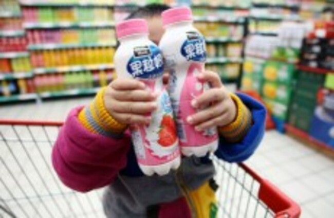 A child holds two bottles of strawberry-flavoured Pulpy Milky at a Shanghai supermarket Weng lei/AP/Press Association Images