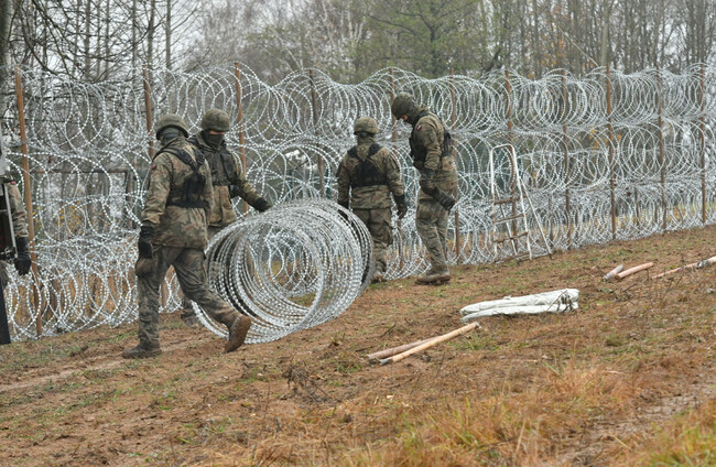 Construction of a barbed wire fence on the borders of Poland, Russia and Lithuania. ABACA/PA Images