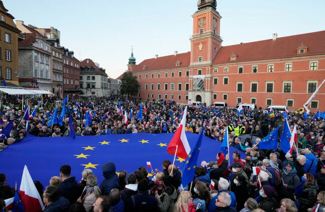 Donald Tusk, the top opposition leader in Poland and a former EU leader, called for the protest, casting it as an effort to defend the country’s continued membership in the 27-nation EU.