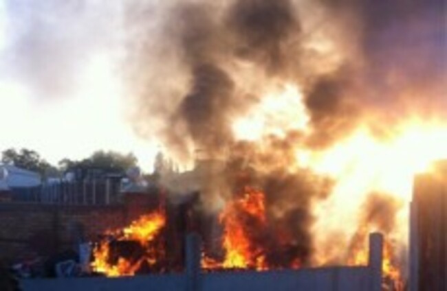 A caravan baracade on fire at Dale Farm this morning @AlexeBennett/Twitter