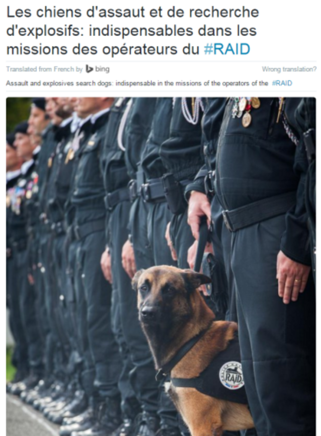 Police Nationale also made a point of honouring the dog, describing her and other police dogs as “indispensable”.