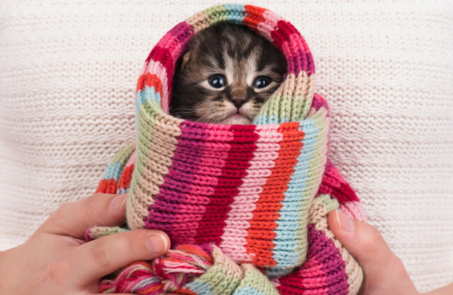 This kitten is warm enough. Are you? Shutterstock/Lubava