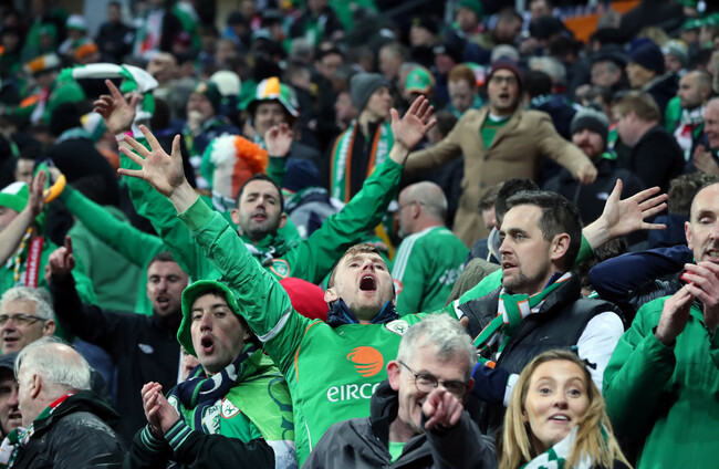 Irish fans at the Parken Stadium, Copenhagen. Niall Carson via PA Images