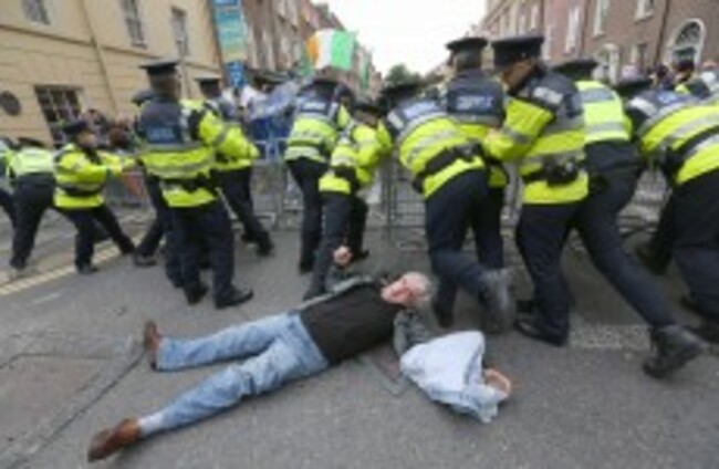 New barriers had been erected at government buildings ahead of the new Dáil term in anticipation of protests that started at 5am yesterday morning.